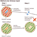 ADN mitokondriale kalon nga nëna të fëmija përmes vezës. Në rastet kur mitokondria është “difektoze”, teknika IVF synon përdorimin e vezës së një dhuruesje për të shmangur problemet për fëmijën.