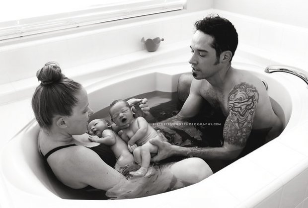 Fotografimi i lindjes së këtyre dy binjakëve është diçka vërtet unike, 70% e binjakëve lindin me prerje cezariane, mirëpo këta prindër kanë qenë të sigurt që dëshironin lindjen në ujë për bebet e tyre. Kjo nënë dhe binjakët e saj e përfunduan lindjen pa kurrfarë ndihme mjekësore. Në momentin që binjakët ishin duke lindur, prindërit e tyre arritën të kontaktonin mjekun e vet. Prindërit e rinj kishin 30 minuta që të mrekulloheshin me të porsalindurin e parë, para se të lindte edhe vëllai i tij. Dhe atëherë gjërat filluan të të linin pa frymë… Bebja nr. 2 erdhi në jetë në qesen e vet amniotike.