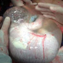 06.06.2013 - Një obstetër grek dokumentoi momentin e një lindje të rrallë, të një foshnje brenda qeses që e mbështjell gjatë nëntë muajve të qëndrimit në barkun e nënës.